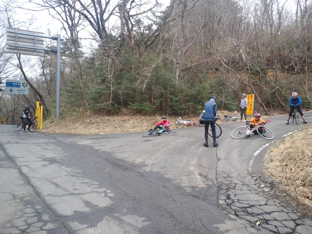 とのことで、今日は山下復活祭サイクリングに変更し、体が鈍ってるであろう山下さんのペースに併せて登坂しようというアザトイ計画でスタート。旗巻峠の最初は緩やかだからいいのだが、500mも進むといよいよ牙をむいてくる。