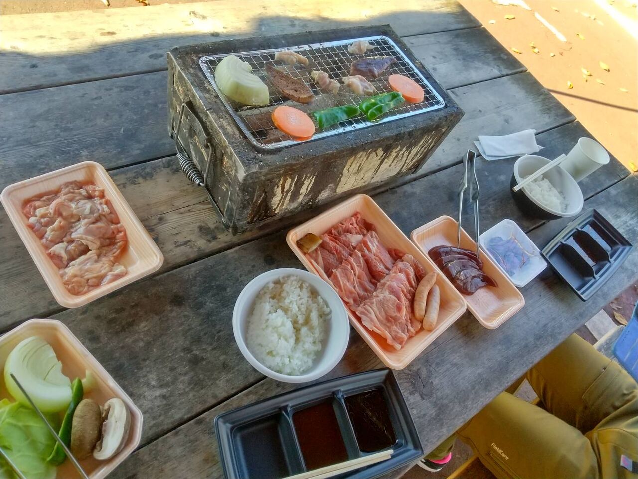 まだ10時だけど早速BBQのBセットを2人前注文する。1人前(肉200g、レバー50g、ホルモン100g、野菜、御飯、漬物)だからかなりのボリュームだ。