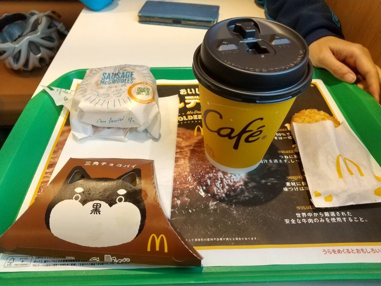 三角チョコパイとマックグリドルセットを注文。