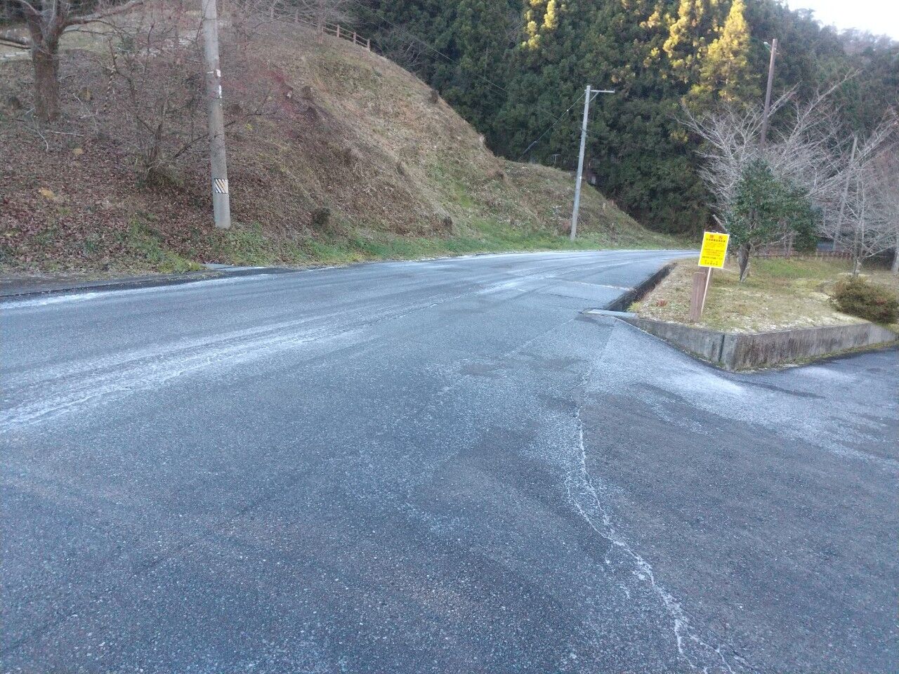 福田小学校を抜けて、いっぱい清水に近づくと路面が真っ白になって凍っている。
